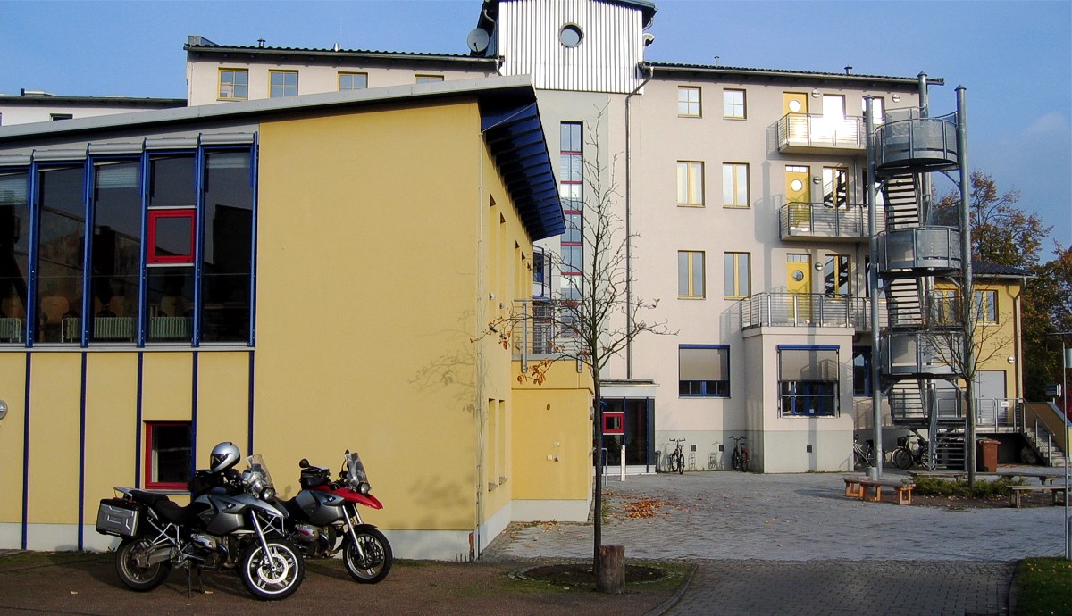 In Bansin machten wir Halt und suchten uns unsere nächste JuHe für die Übernachtung. Greifswald passte und Axel reservierte uns dort ein Zimmer. Es gibt schon gewaltige Preisunterschiede bei den Übernachtungen in Jugendherbergen und ein Vergleich lohnt sich allemal. Denn in Greifswald bekamen wir ebenso wie in Ückermünde ein 4-Bett-Zimmer...allerdings mussten wir hier einen Doppelzimmer-Zuschlag bezahlen, es gab kein Abendbrot mehr und der Grundpreis war ebenfalls viel höher. Summasummarum lagen wir hier in Greifswald deutlich über den Schnitt, den wir von Jugendherbergen her kennen.
