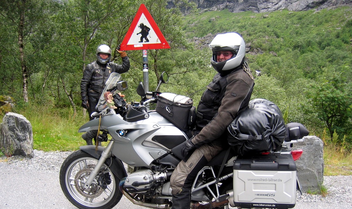 Von Kristiansund aus ging es dann über breite ausgebaute Straßen weiter und sollte uns bis nach Sunndalsøra führen, unserem geplanten Etappenziel für heute. Irgendwann sahen wir ein Hinweisschild u.a. mit den Worten "Sunndalsøra" und "stengt". Was, bitte schön, hieß "stengt"? Keine Ahnung, und so scherten wir uns nicht weiter drum und setzten die Tour fort. Kilometer später entdeckten wir das Schild erneut, dieses Mal allerdings mit einem zusätzlichen Hinweis in DIN A4 auf Englisch "this road is closed" (was wir im Vorbeifahren kaum wahrgenommen hatten). Wie jetzt....road closed? Geht´s noch? Vom ersten Hinweisschild bis hier waren wir bereits etwa 15 Km gefahren, und Sunndalsöra lag unmittelbar vor uns, vielleicht noch 3 Kilometer entfernt. Wir wollten es nicht wahrhaben und fuhren weiter, kamen dann aber bereits nach etwa 1 Kilometer zum Stehen, da die Straße voll gesperrt war. Ein Blick in den vor uns liegenden Tunnel mit seitlich abgegangenen Gesteinsbrocken sagte uns dann auch gänzlich, dass wir hier nicht durchkommen würden. Also, wieder zurück.