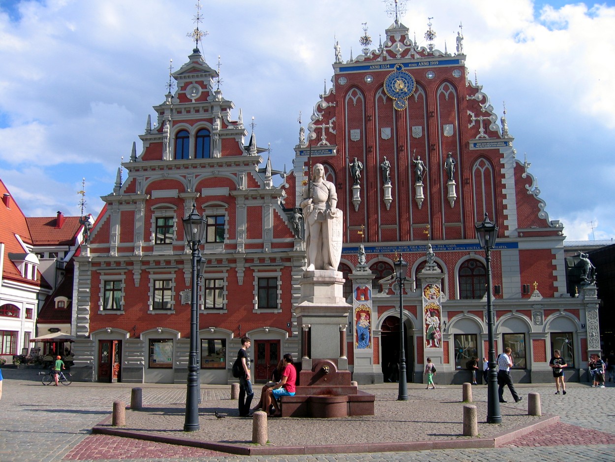 Nach einer halben Stunde setzten wir unsere Fahrt fort. Und nach etwa 90 weiteren Kilometern kam Riga langsam in Sicht. Bevor wir unser Domizil für die Nacht anfuhren, machte Axel mit uns noch eine kleine Sightseeing-Tour. Es ging durch Jugendstilviertel und zum Roland von Riga, den wir allerdings erst nach dreimaligem Umrunden des Stadtkerns und ca. 1 Stunde später fanden. Und dann auch nur zu Fuß, da, wie in vielen anderen Roland-Städten auch, sich der Roland auf dem Marktplatz befand und dieser für Fahrzeuge gesperrt war.