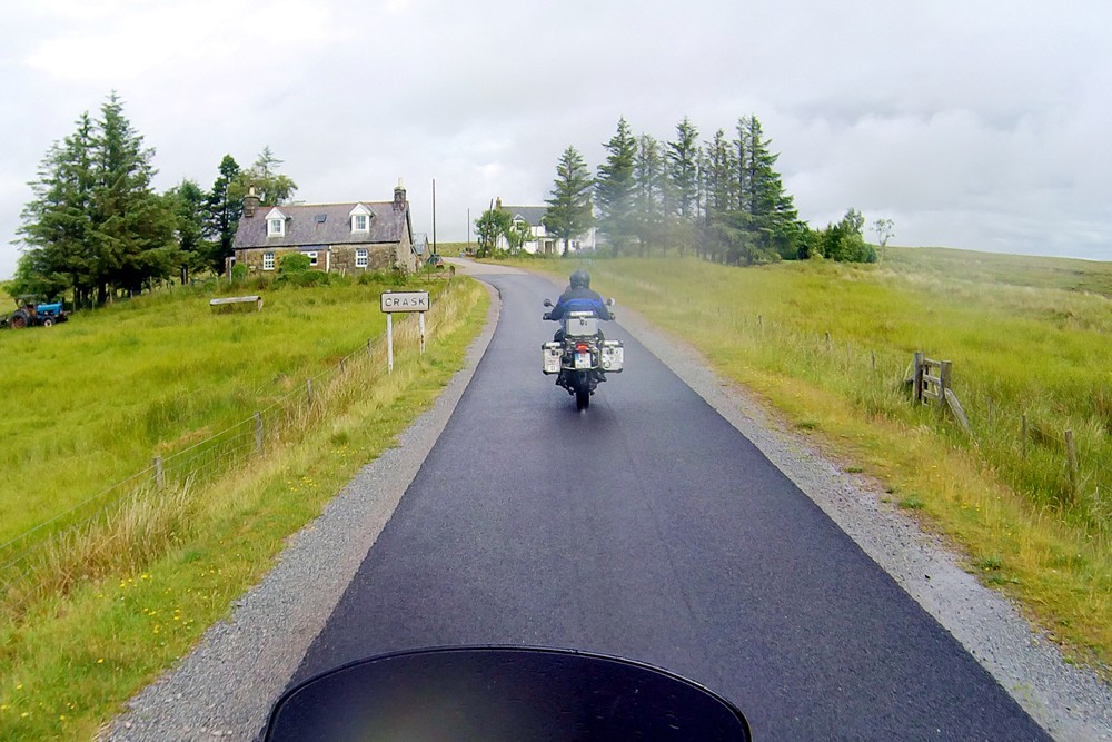 Die Frage wird beantwortet, als wir mitten im Nirgendwo durch Crask kommen, einem Ort, der eigentlich nur aus dem "Crask Inn" besteht. Der Parkplatz ist gerammelt voll und bestätigt uns, dass wir uns immer noch auf der Hauptverkehrsstraße in Richtung Norden befinden. Das Crask Inn sagt von sich selbst, dass es von einer atemberaubenden Landschaft umgeben ist und vielleicht Schottlands einsamstes Gasthaus ist, welches Besucher aus der ganzen Welt herzlich willkommen heißt.