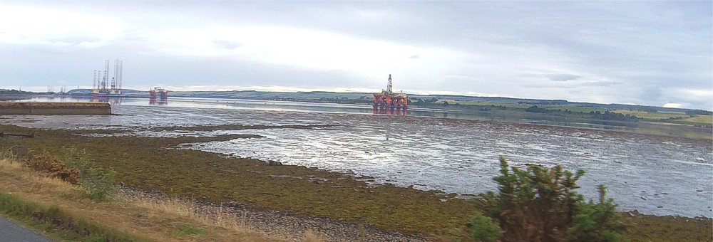 Cromarty Firth mit Blick auf Invergordon und 2 Bohrinseln