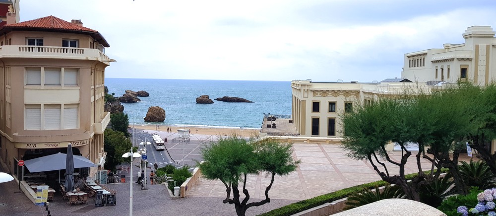 Wir packen unsere Sachen, verlassen um Punkt 9 Uhr die JuHe in Richtung Biarritz und freuen uns auf einen ersten Blick auf den Atlantik. Zwischen schillernden Casinos und noblen Hotels entdecken wir dann einen traumhaften Strand mit relativ ruhigem Wellengang. Zwischen uns hindurch wieselt eine Grazie im knappen Bikini mit Ohrstöpsel und Iphone und steigt die Treppen zum Strand hinab.
