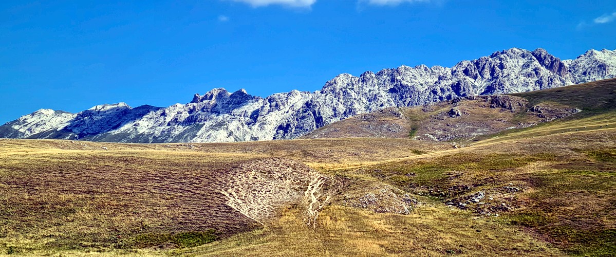 Und schon tauchen wir wieder ein in die Welt der Abruzzen. Heute ist Sonntag und das merkt man sofort am Verkehr. Ganz Italien scheint am Morgen bereits vor den Temperaturen zu flüchten und in die Berge zu fahren. Ist aber auch nicht schlimm, wir genießen einfach die klare Luft und die fantastischen Gegenden. Hin und wieder stehen Kühe einfach so auf der Straße, es gibt keine Einfriedungen. Alles ist total friedlich hier.